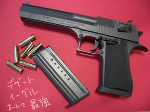 じゃあ土方刑事には何をもってもらうんだい?ということで佐々木さんのリボルバー式に対してオートマ拳銃はどうだろうか。オートマのシャープなラインが副長なんじゃないだろうか(幻想)しかも反動もぱねえ大型拳銃とかお似合いだな。うんデザートイーグル50AEか。いいないいな、これにしよう。